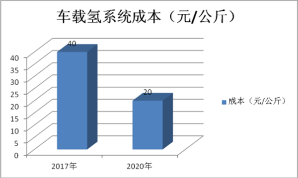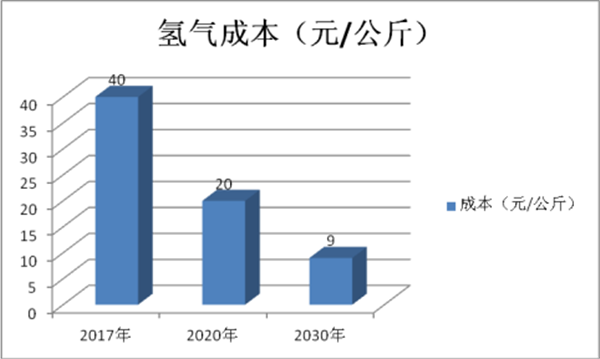氢气的成本也必须大幅度下降。目前最低是 40 元/公斤,随着大批量规模化运氢,到 2020 年可以降低到 20 元/公斤左右,最终可以降低到 2030 年的 9 元/公斤以下。