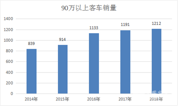 2014年-2018年一季度90万以上客车总销量统计,表二(辆)