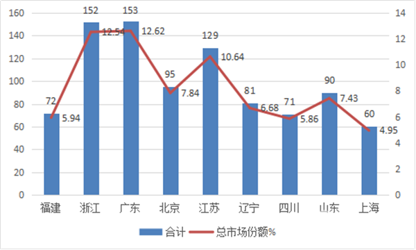 1、福建、浙江、广东、北京、江苏等9个区域市场是90万以上高档客车市场的主要需求市场,集中度比较高。需求比例占整个高档客车市场的74.5%。