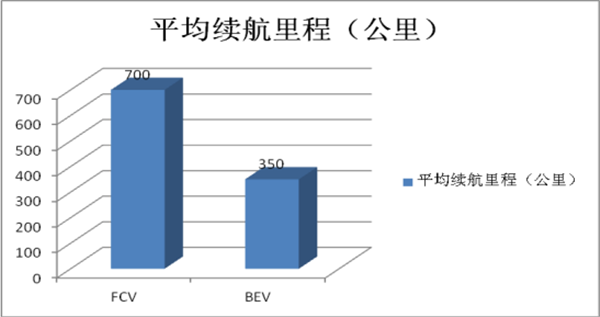 其次,如今的主流企业研发的氢燃料电池客车(FCV)单次续航里程大多可以超过700km,与传统燃油客车车区别不大,但如果跟主流客车的纯电动客车相比的话,可以达到目前市场主流纯电动客车(BEV)里程的2倍左右。