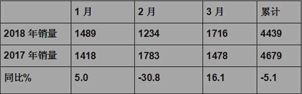 根据统计,2018年1-3月校车各月销量如下