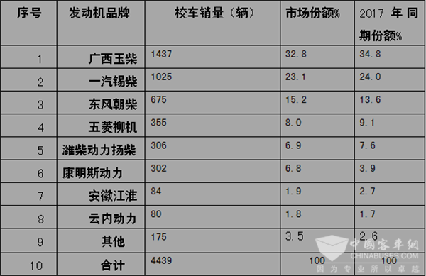 按发动机品牌划分,2018年1-3月校车的销量统计表