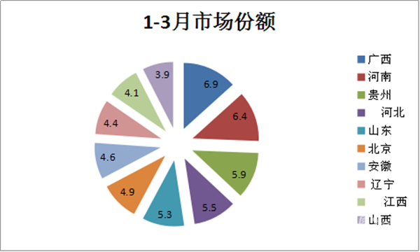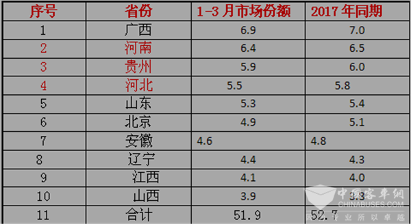根据上牌数据统计,2018年1-3月各重点区域校车上牌数量