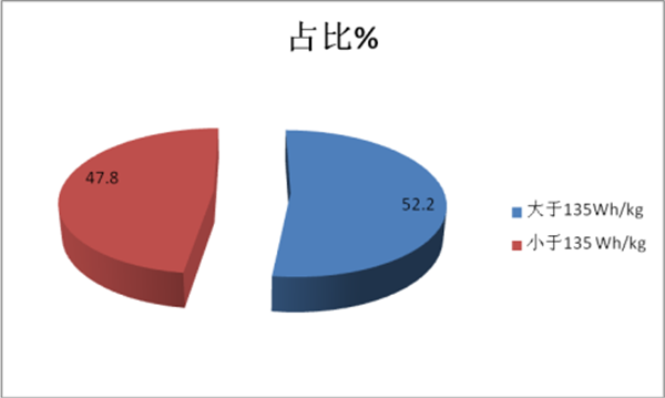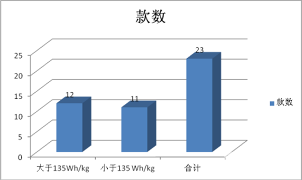 特点四:能量密度在135Wh/kg以上的有12款,占比超过半壁江山,最低的为120.9Wh/kg