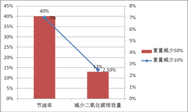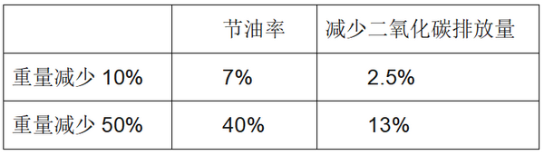 权威资料显示,车身轻量化对于车辆节约能源、减少废气排放均十分重要。若整车重量降低10%,燃油效率可提高7%左右;;汽车车重每减少50%,二氧化碳的排放量就会减少13%,并且汽车整备质量每减少100公斤,百公里油耗可降低0.3-0.6升。