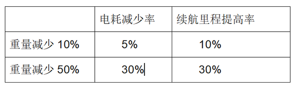 纯电动客车重量减少率与续航里程关系表(大约数据)