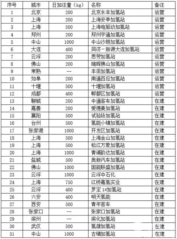 截止到2018年2月底,我国加氢站就达到31个,具体分布如下: