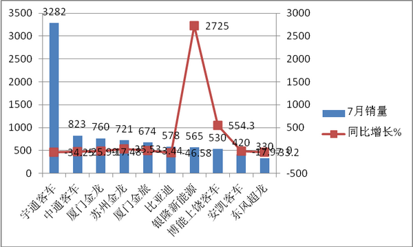 与往年的月份相比,7月份公交车市场“力挫”座位客车市场,实现地位逆转,成为销售最好的细分市场。具体来看,7月份,公交车销售5005辆,同比下降18.49%;座位客车销售4444辆,同比下降31.88%;校车销售1810辆,同比下降11.79%;其他车型(含专用客车)销售691辆,同比大涨215.53%。