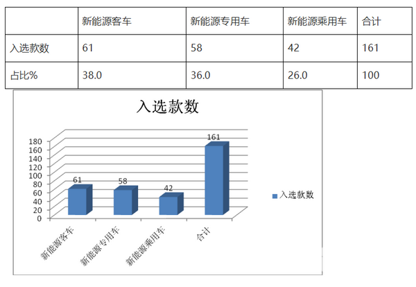 根据统计,在此批新能源汽车推广应用推荐车型目录(2018年第11批)名单中,共包括161个车型入选,其中新能源客车入选61款车型,占比近38%,为最多。具体如下:
