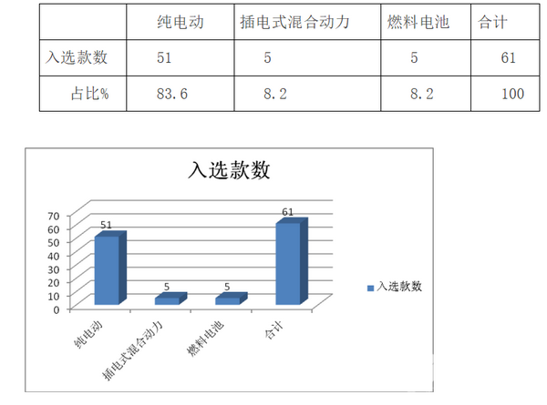 特点二:纯电动客车入选车型51款,为最多,占新能源客车入选车型权重83.6%;燃料电池客车和插电式混合动力客车入选车型均为5款,权重均为8.2%