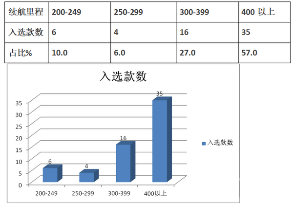 特点五:续航里程大于400公里的占比达到57%,其次是300-399公里