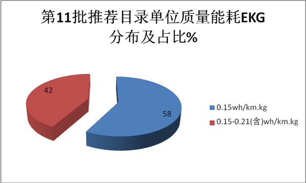 解读:2018年第11批新能源客车推荐目录中,在Ekg一项上能获得1.1倍补贴的共有35款车型,占比达58%,较之第10批比重有所微增。另外16款车型获得1倍补贴,说明各客车企业在客车轻量化技术上更进一步。
