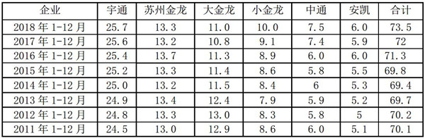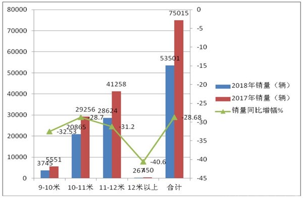 4、2018年长途公路客车市场相对整体客车市场是最为低迷的细分市场。