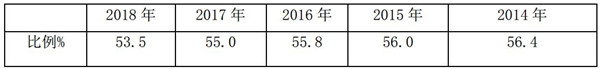 近5年1-12月11-12米公路客车占据长途公路客车市场的比例%(根据近年上牌数据统计计算)
