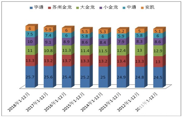 剖析:在2018年1-12月长途公路客车市场中