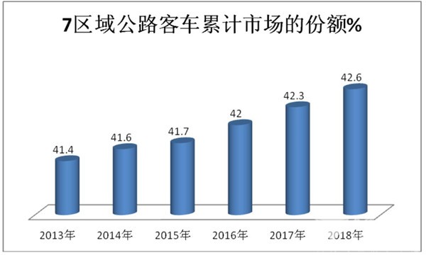 根据近6年的上牌数据统计计算,7区域公路客车市场份额如下表: