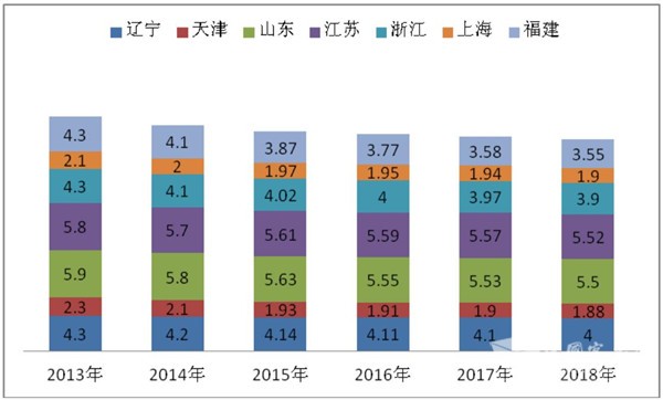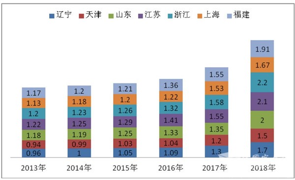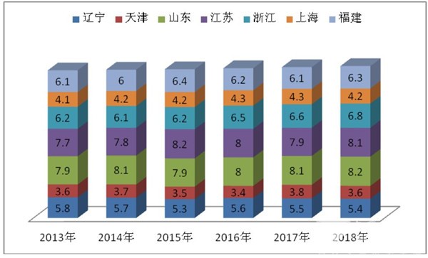3、2018年,江苏、山东、浙江份额位居前三。