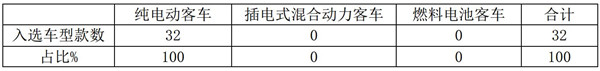 按照动力类型划分,2019年第1批入选的新能源客车车型中,32款全部是纯电动客车,0款燃料电池客车,0款插电式混合动力车型,这也是极为少见的。