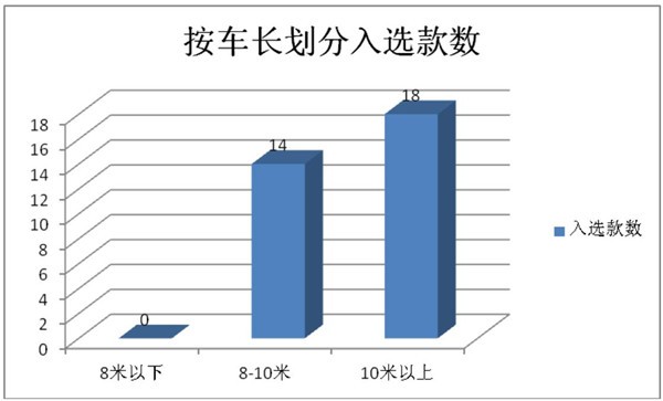 特点八:本批推荐目录32款纯电动中,8米以下车型款数为0;8米-10米车型占据14款,其余18款车型均超过10米
