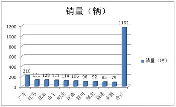 2、销量前10个区域累计销售新能源客车1162辆,占据整个市场近81.9%的市场权重,可见2019年2月新能源客车在全国区域市场的销量分布是很不均衡的。