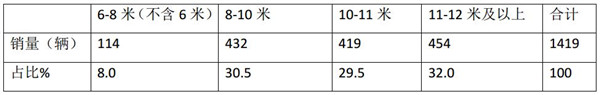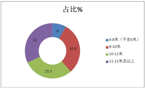 2、8-10米占比为30.5%,居于其次,主要是城乡公交车型居多。
