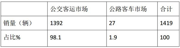 根据数据统计,2019年2月销售的1419辆新能源客车中,有1392辆是用于公交客车市场,27辆用于团体客车等公路客车市场。