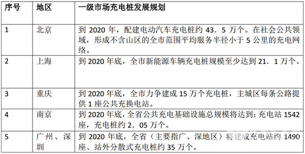 这些城市人口都在数百万以上,交通拥挤,地铁、公交站点众多,社区林立,小区居民到地铁和公交站点距离普遍较远(通常在1公里-5公里之间),居民们买菜、逛超市、上班坐车等都要通过步行解决这最后的“1公里”距离,通常感到很不方,并且政府对近期一级市场的充电桩建设有具体规划(见表3),为未来纯电动小客运市场发展提供坚实的基础设施保障。因此,纯电动小客运车型必然在这些大城市有着巨大的市场商机,并且会尽快变为实际市场。