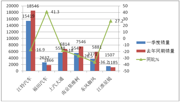 特点四:六强中,销量同比三降三增,累计销量同比下降7.0%----日系轻客2019年一季度主要竞争对手销量分析