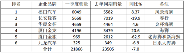 根据中国汽车流通协会市场分会数据统计,2019年一季度日系轻客销量及同比增幅情况表: