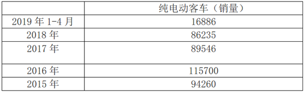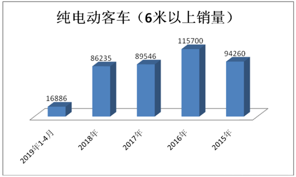 纯电动客车由于政府政策的支持,在国内市场已经耕耘多年。经济性、基础设施建设方面优势比较明显,近年基本形成了规模化(近年具体销量见下表,含6米以上纯电动客车)。