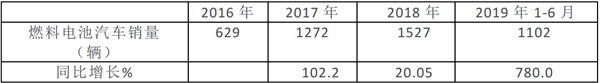 特点二:2019年上半年燃料电池汽车销量同比增幅在近年为最大