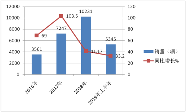 可见,旅游房车市场近年销量一直不大,2018年最大也不过10000辆左右。但近年同比增长幅度较大,2019年上半年同比增幅达到33.2%,相对目前比较低迷的客车市场,算是“风景独好”。