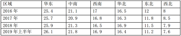 二、 华东区域市场份额最大,西北地区市场份额最小