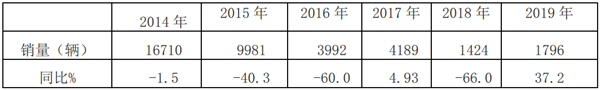 中汽协数据显示,2019年1-6月月燃气客车市场销量1796辆,同比增长37.2%,增幅确实不小;而根据中汽协数据,2019年上半年客车整体市场同比下降7%,具体见表1