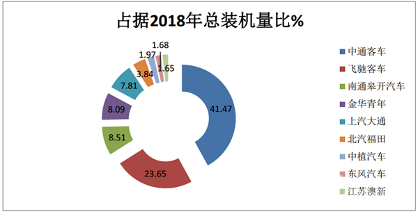 可见,在2019年上半年,中通客车与佛山飞驰继续保持领先,装机量合计达到上半年装机总量的65.12%。仍然是“两霸争雄,中通独大”的竞争格局。但在第三名开始榜单发生巨大变化,进入前5的南通皋开、金华青年、上汽大通在去年甚至没有进入前10榜单。