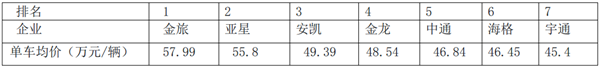 5、从1-7月销售的单车平均价格看(见下表),厦门金旅最高,其次是亚星,再次是安凯。