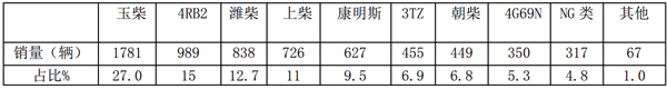 特点四、按发动机动力品牌划分——玉柴占比最多