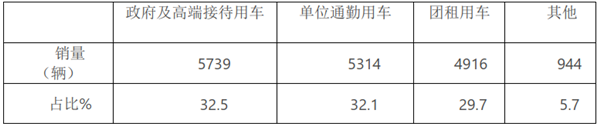 特点三:按目标用途划分,政府及高端接待用车、单位通勤用车及团租客户用车占比几乎是平分秋色,大有“三分天下”之势