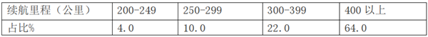 特点七:续航里程大于400公里的占比64%