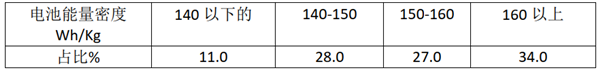 特点八:纯电动客车电池能量密度在160Wh/Kg以上的占比34%