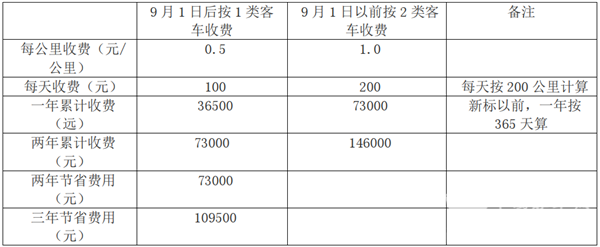 2019年5月底,交通运输部发布了《收费公路车辆通行费车型分类》(JT/T 489-2019)公告和修订解读,其中涉及一项重要内容:1类和2类客车分类界限值由核定载人数7人修订为9人,这意味着8~9座客车通行费用将显著降低。以某地区高速公路收费为例,一辆8-9座轻客,2019年9月1日后实施新标准以后和以前的收费额度比较如下: