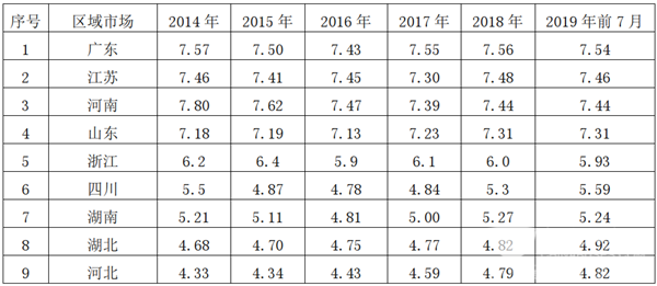 根据数据统计,2019年前8月,包括接驳、旅游团体(通勤)等小客运市场累计销量3万多辆(不包括客货两用、城市物流等细分市场),近年主要区域占据的市场份额统计: