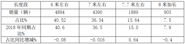 上牌数据显示,2019年前三季度考斯特客车按长度段划分销量结构统计表