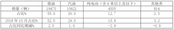 根据上牌信息,2019年10月按燃料种类划分,大中轻客销量结构特征如下: