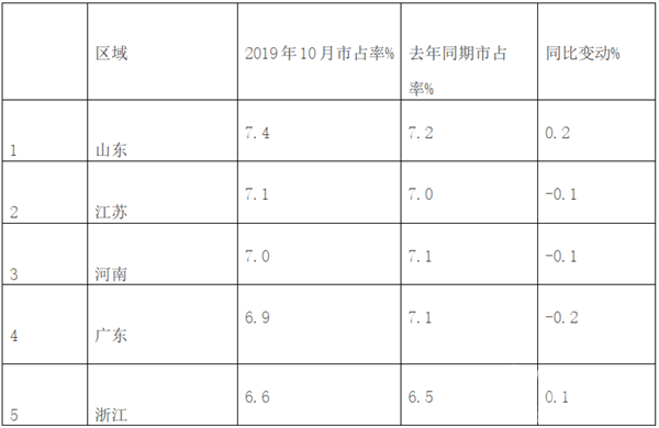 可见,在2019年10月大中轻客车的区域流向可知,市场占有率是不均衡的。