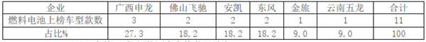 1、6车企入选氢燃料电池客车车型11且均为城市客车;
