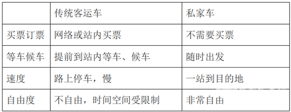 针对“专车”,在定制客运市场方面,采用定线变成"随客而行",定时变成"随客时间"或者多个时间供乘客选择。