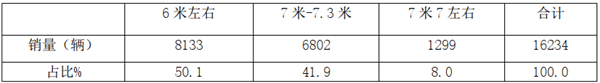 可见,6米长度段考斯特客车销量占比超半壁江山,为最大,其次7米-7.3米段,再次是7米7长度段。