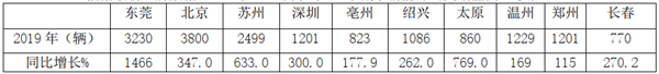 根据最新上牌数据,2019年1-12月以下10个城市新能源公交销量同比暴涨: