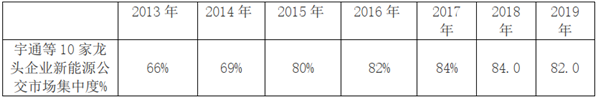 根据行业统计数据显示,近年前10名新能源公交企业行业集中度统计: